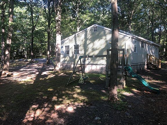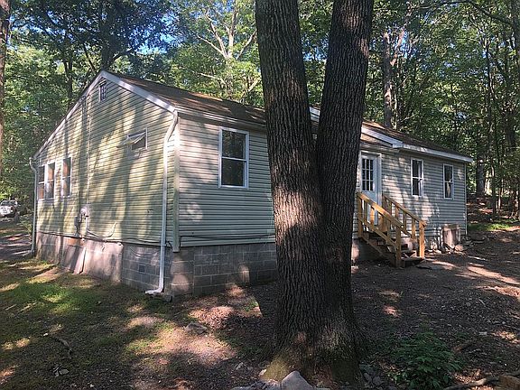 Rare opportunity in a private, quiet community in the Pocono area! This home is sits on over 0.6 acre of mature trees and low maintenance landscaping. 2 Bedrooms and 1 Bath, with a large brick mantel fireplace in the main living space. New flooring throughout the house. The over-sized garage is perfect for 2 cars. A short walk to Emerald Lake for retreat style entertainment, including swimming, tennis courts, picnic area, gazebo, and playground. This home also comes with a full home warranty!
