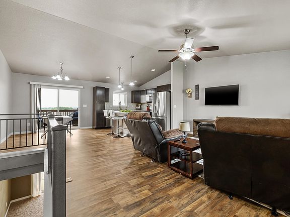 Listed by Shauna Sheets, KWBH, 605-545-5430. Move in ready single owner ranch style home with a finished walkout basement in quiet cul-de-sac! *4 bedrooms, 3 bathrooms and 2,258sqft *Open main living area with a comfortable living room that flows into the kitchen and dining areas *Great natural light, subtle vaulted ceilings and neutral laminate flooring accent these spaces *L shaped kitchen with mocha colored cabinetry, an LG stainless steel appliance suite, herringbone tile backsplash and a breakfast bar island for added seating and storage *Cozy dining area with slider door to back deck *Main level master suite with comfortable bedroom, an ensuite bathroom and a large walk in closet *1 additional bedroom, 1 full bathroom and main floor laundry room complete this level *Finished walkout basement level offers a large family room, bonus storage room, 2 bedrooms with walk in closets and egress windows and 1 full bathroom*Attached 2 car garage with storage shelving and epoxy floor