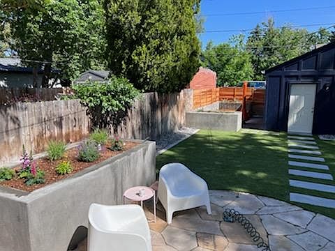 - Exterior features: Bicycle storage, Built in Fire Pit + Lounge Area, Built in outdoor seating, Children's Play area with rubber mulch, fully fenced, Electricity not included in rent, Full fenced property (front and back), Gas not included in rent, Internet not included in rent, Lawn, No Utilities included in rent, Raised Modern Concrete Planter Beds beds, Sprinkler System, Water not included in rent