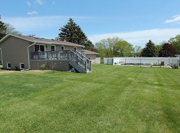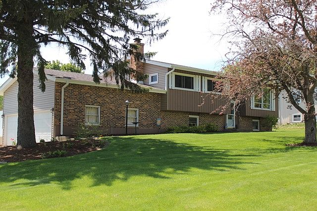 Spacious split-level home on a huge corner lot in sought-after Country Club Estates. This home has loads of space and so much potential! Neutral paint throughout, and newer wood laminate flooring in all of the main living areas. Sunny living room opens to the eat-in kitchen, which features a skylight, updated white cabinetry, and all newer stainless steel appliances. Three bedrooms and a full hall bath complete the main level. In the lower level, you'll find a large family room which showcases a cozy brick fireplace. Enormous master suite includes a private master bathroom with a large step-in shower. Unfinished laundry room with a utility sink. Oversized attached two-car sideload garage! Sprawling backyard is nearly a half acre, and features a maintenance free deck attached to the dining area, overlooking the in-ground pool! The pool is in need of repairs and is being conveyed AS-IS... this is a rare opportunity to create a private backyard oasis and gain some sweat equity! Great location in a quiet neighborhood, just a stone's throw from multiple parks, and only about 1.5 miles from downtown McHenry and the Metra station! Don't miss this one... WELCOME HOME!!!