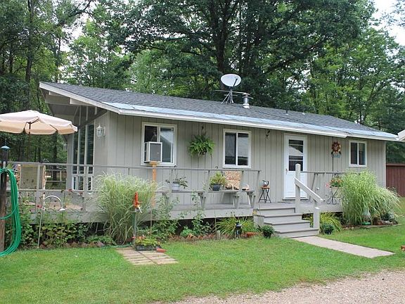 Immaculately maintained 2 bed 1 bath home. Perfect for a starter home, cabin, or a retirement retreat with 2 polebarns (30x40 w/10ft overhang & 24x32), 12x14 shed, 12x20 wood shed, wraparound deck, vaulted ceilings, all new appliances, freshly painted, newer laminate flooring, wood stove in house to cut propane costs, new 200 amp svc in 2014, new roof in 2011, very well insulated, new kitchen with granite countertops, nice perennial gardens around the deck, snowblower and pool table to be included in sale. All this on a nice wooded 10 acres just minutes away from Red Bridge and Tippy Dam, talk about location for the outdoorsman. Owner has deer coming to house and eating out of his hands. This house isn't lacking on seeing the wildlife.