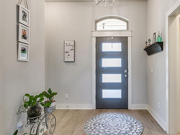 ** OPEN HOUSE CANCELLED** Home is under contract!! Better than NEW Charming four-bedroom, 2 1/2 bath home boasting delightful curb appeal with its covered front porch and decorative pergola. The light-filled living room welcomes you with a cozy gas fireplace, high ceilings and large windows. Upgraded wood-look tile flooring throughout the entire home! The sunny kitchen features granite counters, a breakfast bar, ample storage cabinets, a large pantry, and a cozy dining area. Desirable split floor plan, the private owner's suite offers a luxurious retreat with a large soaker tub, walk-in shower, double vanity, and an oversized walk-in closet. Generously sized secondary bedrooms all come with walk-in closets. 4th bedroom is being used as dedicated home office space and has a convenient half bath near for added home office use. The laundry area includes storage cabinets and an adjacent mudroom area with a bench for coats and bags. Outside, enjoy the fully fenced backyard and covered patio, perfect for outdoor gatherings. *Storm shelter* This home has it all! Easy access to highways, shopping, and dining! Schedule a showing today!