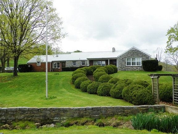 Picturesque working farm consisting of 87+/- acres, 2,500+ SF Brick & Stone House on a full Basement. 3 BR, 2.5 BA, LR with fireplace, DR, Updated Kitchen, breakfast room, Sunroom. The kitchen was recently updated with new cabinets, Corian countertops, appliances. Bedrooms are all spacious with cedar lined closets and lots of windows. Hardwood floors throughout. New High Efficiency Windows recently installed; Geothermal System. Around the farm is 2 springs, a creek, a pond, 5 bay equipment shed with workshop and corn crib; block chicken house, a large run in shed, a huge barn for feeding cattle, a catch pen, several other barn buildings for hay and equipment storage. This is truly a working farm and priced to sell. MOTIVATED SELLER!