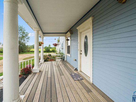 Fantastic opportunity to own a charming 6-bedroom, 3-bath home on 5 acres. This beautiful property, moved from Turkey Ridge in 2009, boasts original woodwork, hardwood floors, a covered porch, two upper-level decks, a walk-in pantry, French doors, a mudroom, an upper-level laundry room, and a separate staircase to the basement. The home features a wonderful floor plan with one bedroom on the main floor and five bedrooms upstairs, with a full bath on each level. The main floor bathroom is completely new, and recent updates include a new roof in 2025 and a furnace and heat pump updated in 2023. Additionally, the property includes a large, double attached garage. Outside, you can enjoy a 24-foot outdoor pool with a cedar deck. The acreage also offers several valuable outbuildings: a 20x60 shop with a concrete floor, heat, AC, 220 electricity, water, and a half bath; a 30x60 shed with a concrete floor and a loft; and a 2-story barn with electricity and a hydrant. There are also a couple of additional sheds, two more hydrants, a pond, and numerous fruit trees. This property offers a unique blend of historic charm and modern amenities, perfect for those seeking space and comfort.