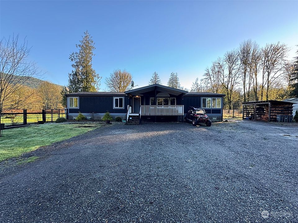 Beautiful opportunity to begin life in the country & experience all of the gorgeous scenery & amazing outdoor adventures waiting for you! 3 Bed/2 Bath on 1/2+ acre, walking distance of the Stillaguamish River. Upgrades include free-standing wood stove w/live edge mantel & new cabinets in LR, custom live-edge bar off kitchen w/barnwood accent wall, renovated bathrm, 8 x 16 shed, chick coop, toolshed, new gravel, ext paint in 2020, fully fenced w/box wire style in front & chain link in back & attractive landscaping. Lots of parking space in driveway. All appliances stay w/exception of W&D. Located just outside Darrington, this home is perfect for the outdoor/adventure seeker or possibly a short-term rental. Move-in ready! Buyer to verify all.