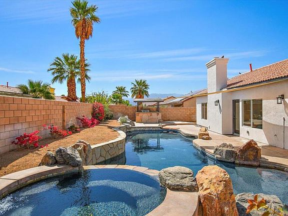 Discover this captivating 4-bedroom, 1.75-bathroom pool home nestled in Thousand Palms. With abundant natural light and stunning mountain vistas, this residence offers a fresh and pristine ambiance. Recent upgrades include new flooring, kitchen cabinets, and an efficient A/C system. The low-maintenance desert landscaping adds to the appeal. Step into the modernized bathrooms with new vanities, toilets, and updated plumbing fixtures. Enjoy the convenience of new windows on the west and south sides of the home, enhancing both aesthetics and energy efficiency. The kitchen boasts a brand-new stove and microwave.Outside, the spacious backyard features a large pool and spa, complete with a barbecue structure and shade awning--perfect for entertaining family and friends. The fully enclosed yard, bordered by block walls, ensures privacy and security. Centrally situated in the Coachella Valley, this home is just minutes away from the interstate 10 freeway, providing easy access to Costco, Sam's Club, Walmart, grocery stores, and gas stations. Additionally, it's conveniently located across from the Thousand Palms Community Center, Della S. Lindley Elementary School, the Thousand Palms Public Library, and recreational amenities such as parks, basketball courts, and baseball fields.