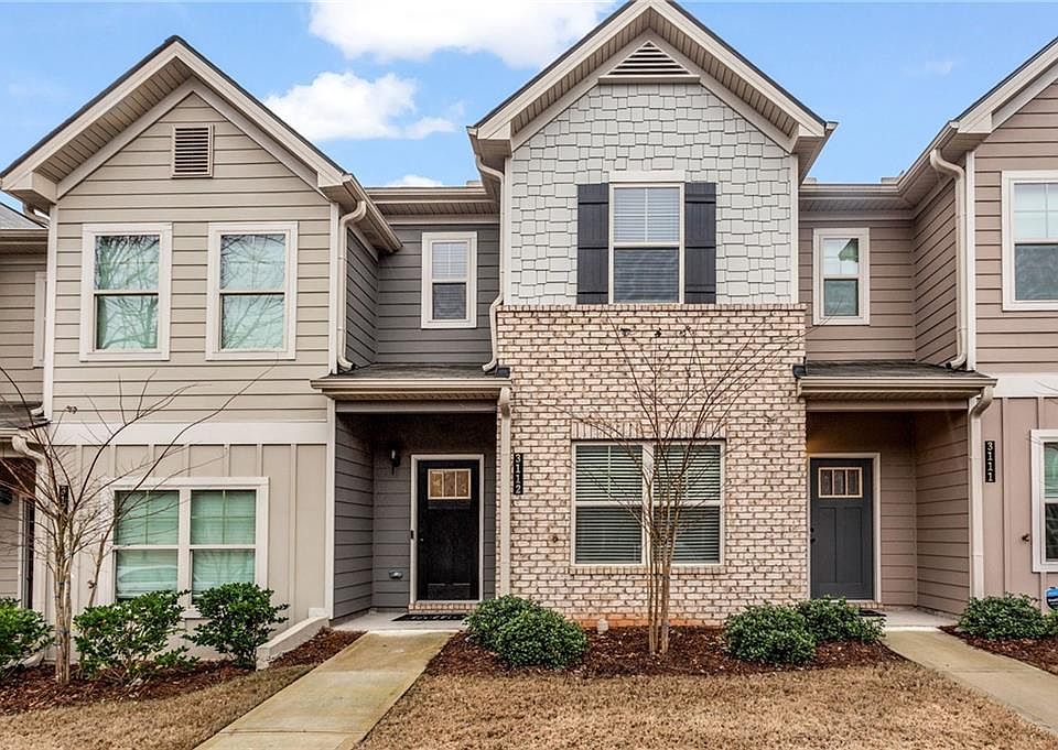 This beautiful two-story townhome, built in 2021, offers a bedroom/flex space and ensuite bathroom on the first floor. The second floor offers a roommate floorplan with two oversized bedrooms, private bathrooms, and walk-in closets. The laundry is conveniently located in the upstairs hallway. The kitchen has contemporary gray cabinets, granite countertops kitchen island, a pantry, and stainless appliances. Rear patio for grilling and relaxation. Conveniently located 10-15 minutes from 1-285, I-85, and Hartsfield Jackson Airport. Property qualifies for 100% financing for qualified borrowers.