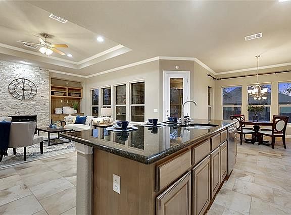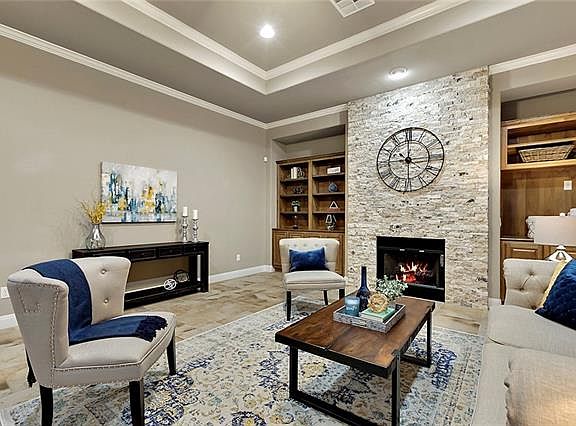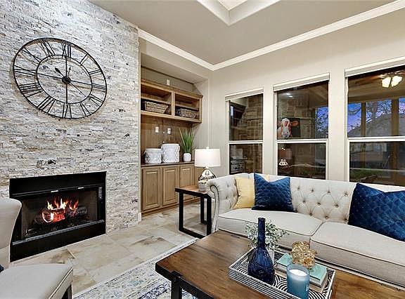 Beautiful Jimmy Jacobs Model, with superior finish outs; Travertine tile, custom cabinets & built ins, floor-to-ceiling stone & gas fireplace, black granite countertops, SS backsplash, bay windows, window treatments, big glassed in shower & garden tub, etc. Beautiful screened-in patio/outdoor living space with southern exposure, gas fireplace, TV & speaker outlets, built in SS gas grill w/rotisserie. Private office in garage. Garage has workshop, deep sink & extra storage. Smart control security systems.