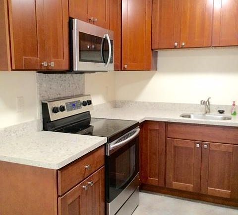 El Cerrito, 3 bedroom 2 bathroom apartment in a 4 unit building! Remodeled with cherrywood kitchen cabinets, quartz countertops, stainless steel refrigerator, built-in microwave, ceramic cooktop stove, self-cleaning oven. Master Bedroom is an en-suite with double sink vanity, 2 mirrors and shower. Both bathrooms have cherrywood vanities with quartz tops, modern vanity lighting, new shower/tub opaque doors, easy-clean enclosures and brushed nickel fixtures throughout. All bedrooms have ceiling fans. This unit includes an enclosed 1-car garage with automatic door opener and storage cabinets. Your private fenced, planted patio is accessed through your kitchen sliding door. Coin-op laundry room in building. Water & garbage service included. 1 year lease, no pets, no smoking, no co-signers. Rent is $2800 per month with security deposit and proof of renters insurance.