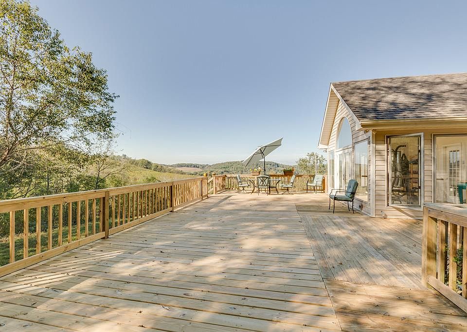 Beautiful horse farm * 6 stall barn with 1 bedroom apartment * pasture has a creek * home sits on hilltop with fabulous views from every window * open and spacious * split bedroom plan * new hardwood floors * sunroom opens up to large new deck great for entertaining * 2 septics * 3 water taps * riding arena
