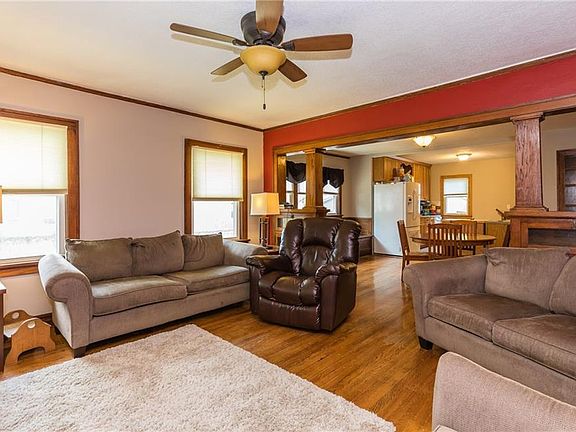Welcome home! This home is truly move in ready. It sits on a double, fenced lot with a large patio for relaxing or entertaining family and friends. The home itself has a cozy front porch, comfortable living room, office/sun porch/den off the living room, 3 bedrooms, updated main floor bath and a beautifully updated kitchen. There are beautiful hardwood floors throughout as well as new windows, updated furnace/air, siding and roof. Downstairs you will find a rec room area, non conforming bedroom/office and another full bath with a Jacuzzi tub! A large 2 car detached garage is here too! Don't miss out! Come take a look today!