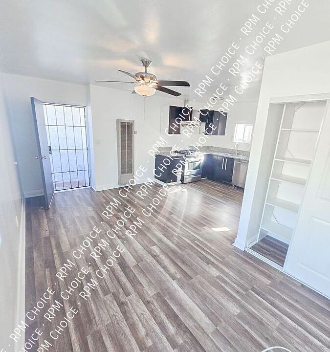 Open Studio Condo Layout with Appliances & Updated Bathroom. Vinyl flooring throughout, connected living room + kitchen + bedroom layout, ceiling fan in main room. Closet with doors included. Kitchen with full appliances & ample cabinet space. Updated tile flooring and shower in bathroom. Shared coin laundry in garage. Located in a residential neighborhood with ample street parking. All Utilities included for $100 per month excluding WIFI.