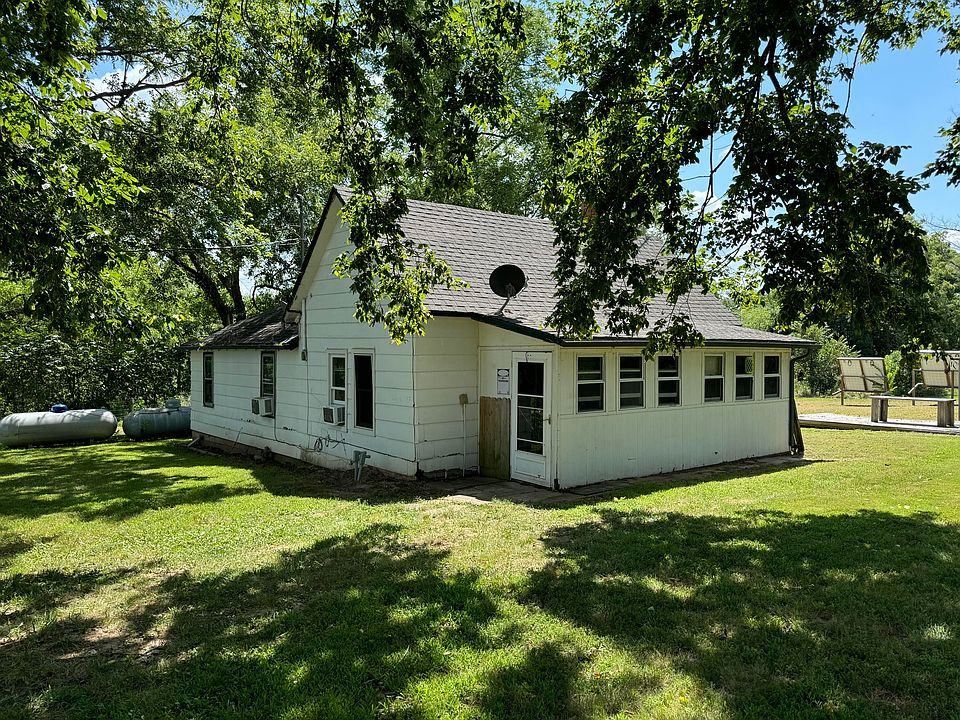 This secluded 3 bedroom 1 Bath farmhouse offers the perfect blend of rustic charm and modern sustainability, set on a sprawling 11.2 acres. The home is equipped with solar panels that provide renewable energy, ensuring low environmental footprint. The kitchen is functional and features a propane-powered stove with battery back up, allowing for reliable cooking options even in the most remote settings. With a little love this home can be the secluded, peaceful location you have been waiting for. Outside the property boasts a spacious shop, ideal for hobbies, storage, or a workspace. The acreage provides ample opportunity for gardening, livestock, or simply enjoying nature. This property has beautiful shade trees and will be a haven for those seeking self-sufficiency and a connection to the land offering a unique simple life style away from the hustle and bustle of city life. The home is located in Skyline Schools and Polk County. Pomme De Terre Lake boat launches are approximatley 10-15 minutes away. The property has no restrictions.