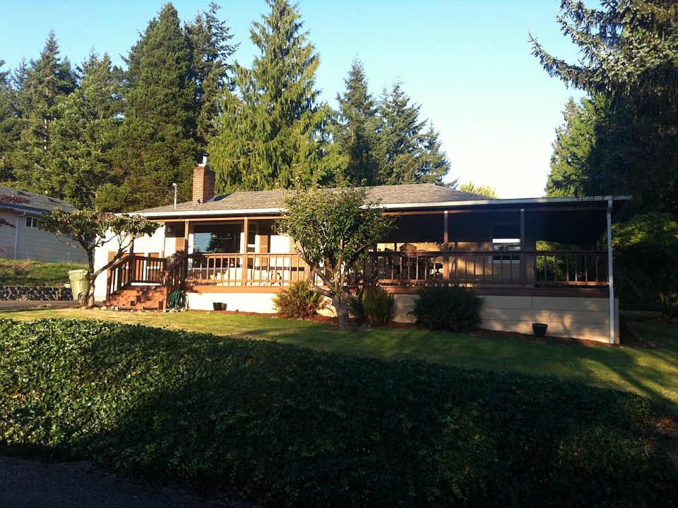 Location, location this 2 bedroom, 2 bath home has lots to offer. Hardwood and laminate floors, fireplace, open kitchen with tile back splash, large covered wrap around deck, sliding glass door to covered back patio. Huge yard with mature landscaping and fire pit. Converted garage is being used as a 3rd bedroom. Also forced air heat with heat pump.