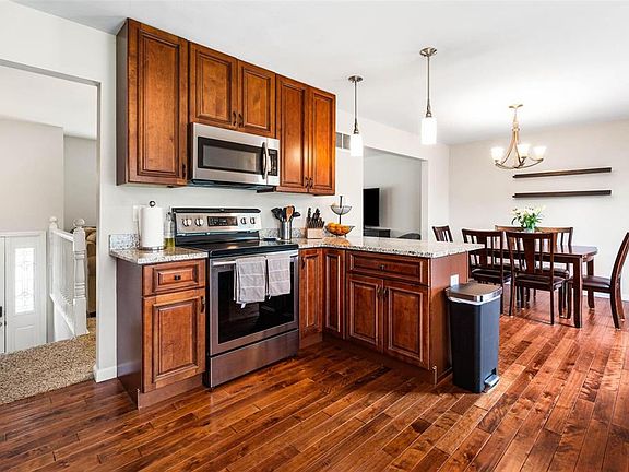 Welcome to your new home in St. Charles, MO! This charming residence offers 3 bedrooms, 2 updated bathrooms, and a stunning kitchen with granite countertops, 42" custom soft-close cabinets, and stainless steel appliances, including a double-door refrigerator, dishwasher, electric stove, and built-in microwave. The open layout features gleaming hardwood floors in the kitchen and dining area, perfect for gatherings. The partially finished basement adds extra living space with an updated recreation room. Step outside to a spacious deck in your fenced yard, perfect for relaxing or entertaining. Enjoy the convenience of an oversized attached garage, off-street parking, air conditioning, and forced-air heating. Located in a sought-after area, this home offers a perfect blend of style and convenience. Don’t miss your chance to make it yours!