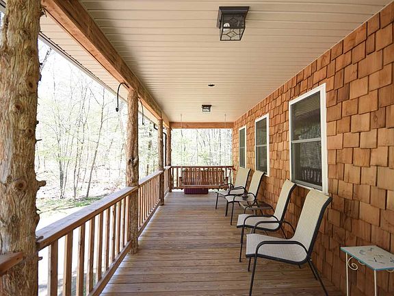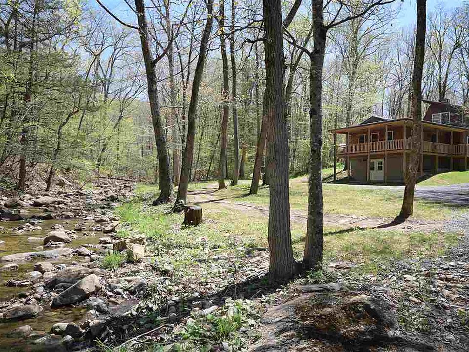 Over 1900sqft cabin with lots of unique craftsmanship perfect for a full-time residence or second home! Cedar shakes exterior and saw cut cedar post support this wrap around porch overlooking a mountain stream. Features: hardwood floors, custom built interior doors, locally harvested wainscoting, and chair rail. Not to convey: basketball, airplane play set, cat house,front porch swing, pole shed