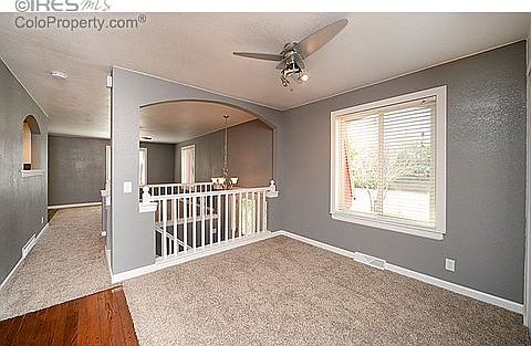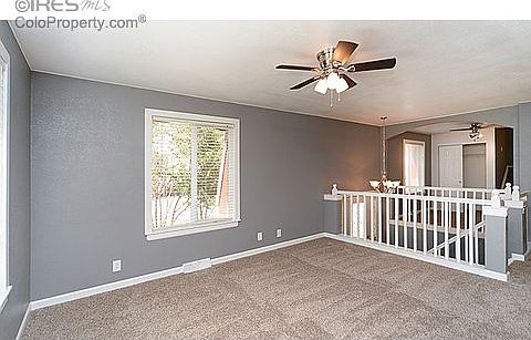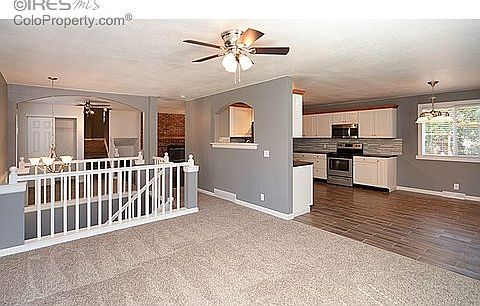 Gorgeous updates throughout, SS appliances, decorative tile and paint. Hearth room with hardwood floors. Cozy reading nook/study. Versatile floor plan offers two master bedrooms and large family room/in-home office. Large windows. Open, bright design. 18 x 11 deck. Lower level walks out to a generous backyard with privacy fence, patio and many garden beds. 552 sq. ft. garage. New roof, paint, carpet, tile, appliances and windows. Sculpture Park and Lake Loveland nearby.