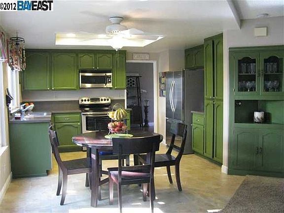 Great Ponderosa home featuring CaesarStone counters and stainless appliances in kitchen. Newer dual-pane windows, tile roof, attractive laminate floors with 4-inch baseboards in LR & DR. Large, private backyard with views of the Pleasanton Ridge and no rear neighbors ~ backs to Del Prado Park.