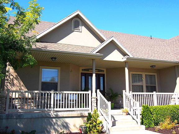 This is one very immaculate & incredibly clean home! Not a penny will have to be spent for you to move into this well-designed living space. This former model home is enriched with features both inside & out that will absolutely spoil you! For starters the upgraded stone exterior & large inviting sitting porch will welcome all who visit. Made for enjoying the beautiful mountain vistas & changing leaves this amply sized covered porch is also perfect to display all your festive décor to create the quintessential holiday atmosphere! The elegant front door, tile entry, grand arches, custom Venetian plaster, tall 9 ft. ceilings with high, bright & beautiful windows plus a distinctive mural niche in the front living room all make a distinct first impression! Once inside you will be delighted further with wood railing, a tile fireplace with glazed alder mantel & decorative lighted alcove over the fireplace! The splendid decorator hood over the kitchen island really sets an expensive and custom feel. The kitchen further offers tile flooring, a fun cabinet door style, pendant lights, granite countertops, stainless appliances, a gas range & included refrigerator! There is a convenient main level laundry with overhead cabinetry, a large & fun bonus room, a spacious master suite featuring a grand master bath with tile floors, a large soaking tub & separate shower with easy to clean cultured marble surrounds, a huge walk-in closet with a window & a ceiling fan! The home also offers three-tone paint & new carpet throughout the entire home!!! The awesome basement is adorned with an included huge theater screen, projector, surround sound system & components, beautifully encased windows, can lighting & a custom designed floor-to-ceiling stone fireplace with a blower on a thermostat! There is a wet bar with a sink & included mini fridge, laminate wood flooring, a finished play space under the stairs, an elegant bath with double sinks, framed mirrors, elongated toilet, upgraded title flooring & a tile tub surround, 2 large bedrooms & and huge 32' long cold storage under the entire front porch! The large, private & meticulously cared for .37 acre yard also impresses with its professional landscaping, full vinyl fencing, charming pergolas at both side entrances to the yard, secondary water & full automatic sprinklers! Additional attic insulation has been added along with all LED lighting in the basement and CFL bulbs elsewhere for great efficiency. The garage is finished, painted, has insulated garage doors & built-in electric baseboard heaters! The area schools are fantastic & the elementary is within walking distance. There is great access to Jensen Nature Park, its fishing ponds, miles & miles of biking trails & Glen Eagle Golf Course! This home ticks all the boxes on your must have list. Come take a peek...it really is a lovely property!