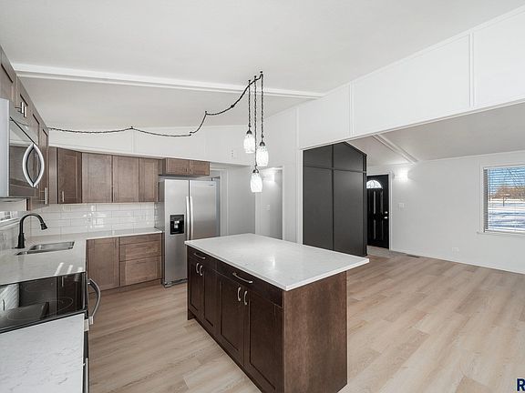 Are you looking for a remodeled house that sits on an acre lot close to town in the Brandon Valley School district?! THIS IS IT! Beautifully remodeled 4-bedroom, 2-bathroom home with a 2-stall garage + extra parking pad, & 2 sheds is situated on a sprawling 1-acre lot. The heart of the home is the thoughtfully designed kitchen, boasting brand-new SS appliances, granite counters, tile backsplash, &custom cabinetry. The open floor plan seamlessly connects the kitchen to the dining area & living room, creating an ideal space for entertaining friends & family. The living room features a cozy fireplace, perfect for chilly evenings. The basement has a large family room & primary suite with large walk-in closet & attached bath. Step outside onto your expansive 1-acre lot. Enjoy the serenity of the landscaped yard along with the 14x20 concrete patio- perfect for outdoor activities and hosting summer barbecues. Roof: 3yrs, Windows & siding: Less than 5yrs, new A/C, furnace,& heat pump 2023