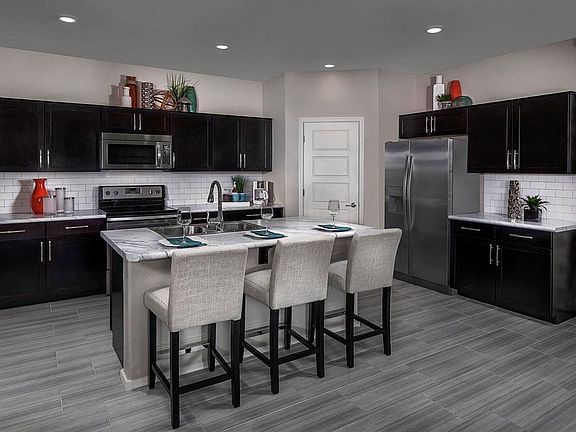 * ALL New. Built May 2017 with many upgrades. * Single story. Square Footage: 1712 sq ft. - 2 Car Garage * 3 Bedrooms + Den/Office. Dual vanity in master bath. * Tiled kitchen and living room. New carpet in bedrooms. * Hardwood kitchen cabinets. Silestone Counter tops. * Brand new stove, microwave, and dishwasher. * ENERGY STAR qualified. Insulated walls mean huge savings on power bill. * WiFi/ app controlled AC. * USB phone charging outlets in bedroom and kitchen. * Home pressure regulator. * Covered patio. Backyard with Turf. * Community pool, playground and BBQ area. * Guadalupe & Power. Gilbert Public Schools * $100 HOA fees included. Available July 1st, 2018. Pictures with furniture are of similar "model" house Plan furniture layout: http kbhome.blu-plan.com/plan/plan-1712_3 Virtual tour of the "model" house: https my.matterport.com/show/?m=HfTwdQTbnRc 2-Year Lease.