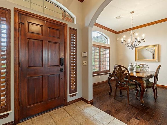 Inside, you’ll find hand-scraped wood floors in the office, formal dining room, and hall leading to the primary suite, along with custom woodwork floor-to-ceiling shelving. The primary suite is a true retreat with a spa-like shower and an oversized walk-in closet. The kitchen boasts granite countertops, a stainless steel convection oven & cooktop, a Bosch dishwasher and a massive walk-in pantry with floor to ceiling shelving.