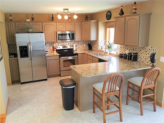 You will love this beautiful walk-out ranch nestled in a wooded Southwestern Hills cul-de-sac. The front porch invites you inside to an open floor plan with a lovely fireplace & surrounding high ledges. The formal dining room with tray ceiling accommodates a large table & hutch. The remodeled kitchen has gorgeous granite counter-tops, tile back-splash & stainless steel appliances. This 4 bedroom, 3 bathroom home with an attached garage gives you 1,698 sq ft on the main and 700 sq ft finished in the basement to move about. The master suite offers a tray ceiling with a view of the wooded area in the corner of the backyard & the en-suite bath includes a jet tub, shower & walk-in closet. The lower level features a large family room with an attractive corner gas fireplace, 4th bedroom, bathroom, wet bar, plenty of storage and a workshop area with a deep sink & additional side door to the backyard. This home has great curb appeal, is close to schools, shopping, & just minutes from downtown.