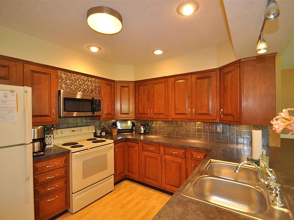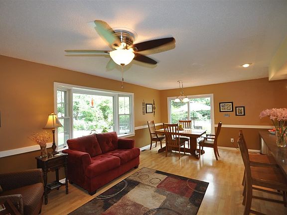 You must see inside! Great room added & newer kitchen w/tile backsplash, eating bar, microwave & all appliances stay. Sophisticated lighting, timeless cabinetry. Oak floors & laminate. Built-in book cases, walkout basment, newer sliding doors & upper level windows, remodeled bath, newer carpet, roof '09, privacy fenced awesome yard w/patio, shed & shade. Newer R39 insulation in attic.