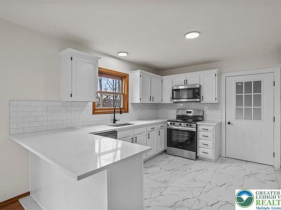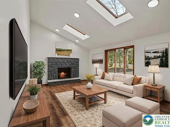 Do Not Miss This Beautifully Remodeled 3+ Bedroom Ranch with Fully Finished Walkout Basement and Garage, Tucked on a Quiet Cul-De-Sac across from the Stroudsburg Intermediate School Campus! Set on nearly an acre with no HOA and township roads, this home offers a rare mix of privacy, location, and turn-key comfort just moments from downtown and Route 80. Step inside to vaulted ceilings, dual skylights, and a stunning stone fireplace anchoring the open-concept main living area. The fully updated kitchen features quartz counters, new stainless appliances, and tile backsplash - all flowing seamlessly into the dining space and out to a large deck that's perfect for grilling and gathering in warmer months. All three main level bedrooms offer great light and style, including the vaulted primary suite with private bath. Downstairs, the wow factor continues with high ceilings, another full bath, a bonus room for guests or office use, and a sprawling rec space for game nights, workouts or movie marathons. New roof, new LVP flooring, and efficient hot water baseboard heat. No carpet anywhere. Live easy, entertain big, and enjoy peace of mind knowing everything's been done. Homes Like This Are Rare; Do Not Delay - Call to Schedule Your Private Tour Today!