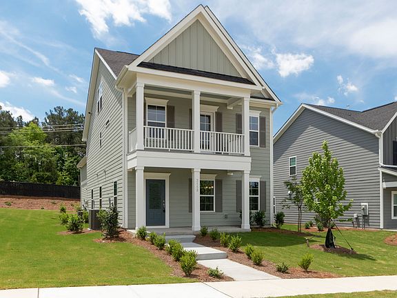 Gorgeous dual front porch Charleston-style home with detached garage offers a fully finished loft above garage which also includes a full bathroom and kitchenette. On the main home, an owners suite features a private door with access to the second story porch. This three bedroom, three-and-one-half bathroom home includes a family room that flows into an eat-in and open kitchen equipped with an island and walk-in pantry. The laundry room is conveniently located on the second level close to the bedrooms. This Hopewell II includes optional third floor bonus room, under-cabinet lighting in kitchen, butler's pantry, pendant lighting at kitchen island, quartz countertops, raised vanities at second bathrooms, covered porch, painted garage, and many other niceties.