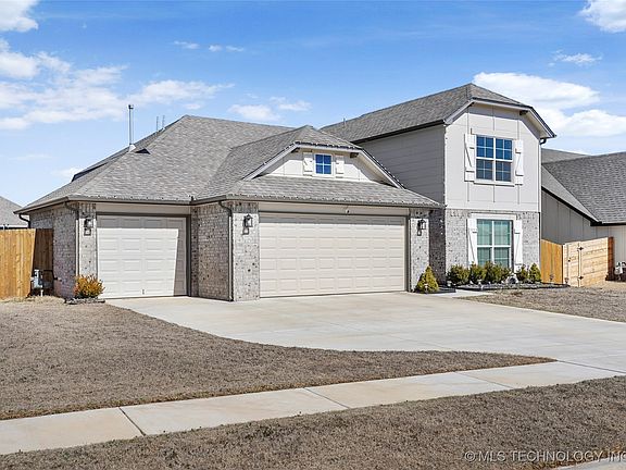 This spacious 4 bedroom, 3 bathroom home built in 2021, offers modern features and a prime location. The open concept kitchen boasts granite countertops, ample cabinets space and a seamless flow into the living area. The primary suite is located downstairs, featuring a private bathroom for added comfort and convenience. Upstairs, a large game room provides additional living space, perfect for entertainment or a home office. Located in the Broken Arrow school district, this home is conveniently situated across the street from the neighborhood pool. With three full bathrooms and a well designed layout, this home is move in ready and designed for comfort.