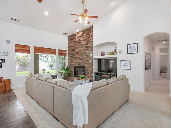 Welcome to 3112 W. Delaware Ct. located on the NW side of town in the Ashley Grove subdivision. Step foot into the home where you will be greeted by a formal dining room that overlooks the front yard and an office which can function as a 4th bedroom and includes a closet. Walk beyond these rooms into the open living room which boasts vaulted ceilings, a fire place with floor to ceiling stone work, surround sound, and large picturesque windows that frame the backyard. Enjoy all of these amenities from the kitchen, that is outfitted with stainless steel appliances, a walk-in pantry, cabinetry, a large island the overlooks the living room and eat-in breakfast nook. Off of the nook, one will find a door that opens to the covered patio that sprawls the entire width of the home. Once back in the house walk to the opposite side of the home where you will find 2 bedrooms and a bathroom with double sinks. Walk through the double doors into the generous master bedroom and master bath.