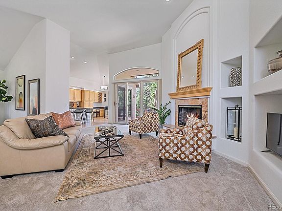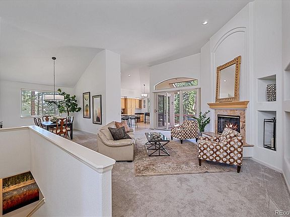 Located at the end of the street and bathed in sunlight, this gorgeous mountain home in The Woods features neutral colors and lovely finishes. True one level living this home has five bedrooms plus a study and three full bathrooms. The vaulted great room (open to the kitchen and dining room) has gas fireplace, built in shelves and access to the private deck. The quality kitchen boasts hardwood floors, stainless appliances, granite counters, eating area and access to the deck. Large island has pressed metal accent and provides additional cabinet and counter space. Enjoy morning coffee, feed the birds and take in the beautiful surroundings on the private deck. Primary bedroom features five-piece bath (including soaking tub) and large walk-in closet with organizers. Second bedroom on this level has built in bookshelves and window seat. Study/office, laundry room and garage access also on the main level. Downstairs you’ll find a family room with a second gas fireplace, three additional bedrooms, full bath and large storage space. Enjoy a glass of wine or the passing wildlife on the shaded back patio. Garage has 50 amp service for rapid EV charging.