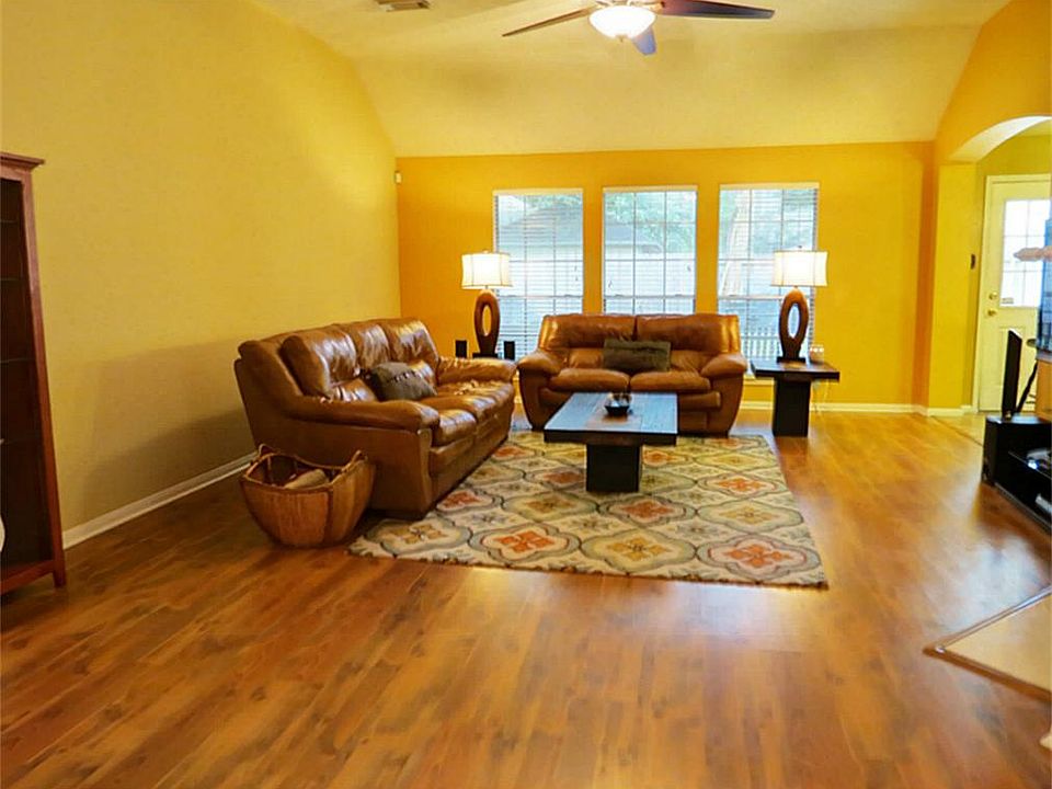 Beautiful one story home with many upgrades. Home features kitchen w/granite counters,stone backsplash,stainless steel appliances,breakfast bar & breakfast room; laminate wood floors in den,dining,study & bedrooms; slate tile floors in bathrooms; large den w/double sided fireplace into formal dining room; private study w/French doors; master suite w/2 sinks,garden tub & separate shower. Fresh interior & exterior paint,ceiling fans in all rooms,updated lighting & fixtures. Don't miss this one!