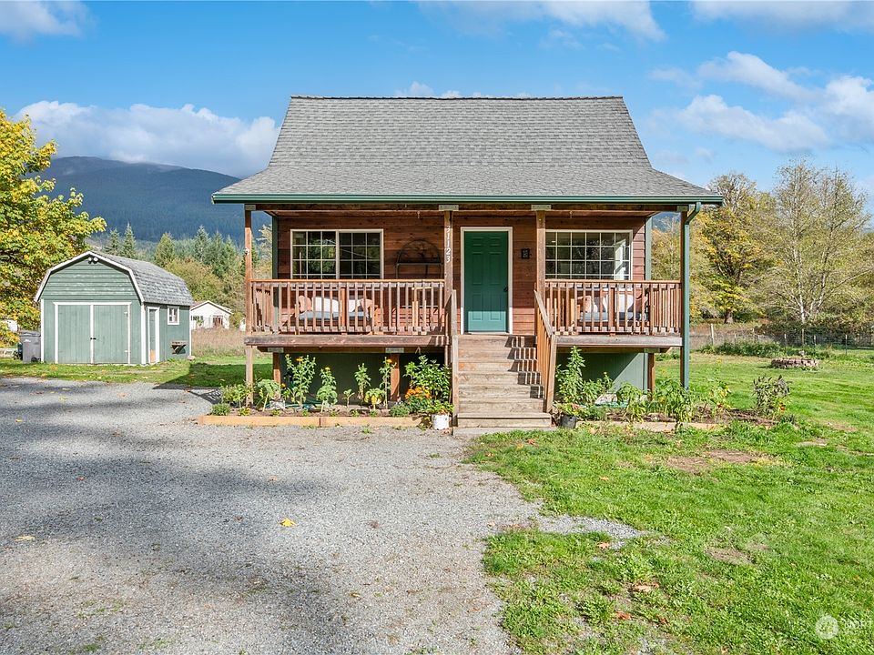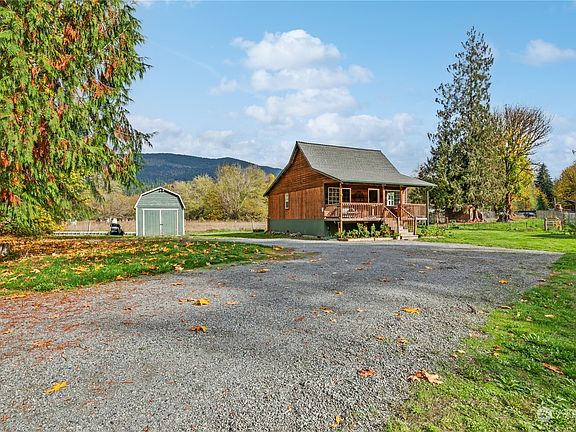 Escape the city hustle to this cozy & well kept home across from the Stillaguamish River. With gorgeous mountain views, tons of garden space, a wide selection of fresh fruit trees in the front and a chicken coop area this place has it all! Pull into your circular driveway, leading right to the oversized front porch looking over the peaceful surroundings on your spacious .61 acres. Walk in to soaring ceilings in living & dining room, desirably open to kitchen. 2 bedrooms in back of home, with wonderful territorial views! Full bathroom, laundry room & extra storage/possible office space. Don't miss the loft above the main living, with endless possibilities for use!