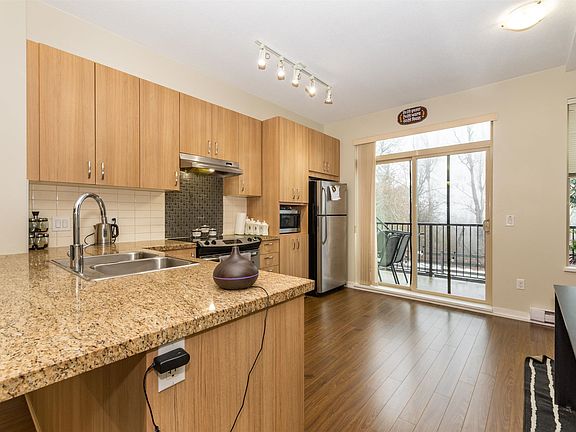 Your new home search ends at Kinfield at Westerleigh. The location is fantastic and puts you within walking distance to all three levels of schools, rec centre, parks, High Street mall, Sikh Temple, and highway 1. Inside you will find over 1296 square feet of living space, featuring 3 bedrooms and 2 baths. You will find an open floor plan on the main floor that includes a spacious kitchen, dining area, and living area.Enjoy your private yard that backs to a green belt and walking trial. The best part of this townhouse complex is the amenities, including access to the pool, hot tub, fitness studio, fireside lounge, hockey room, theatre, pool table, and more. Rentals are allowed!