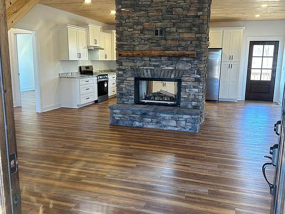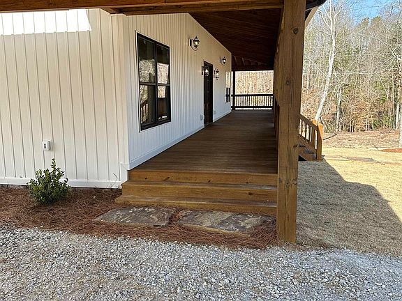 Nestled on over 6 acres of countryside this 2450 square foot (under roof) two story farmhouse has a little bit of everything to offer. A winding driveway brings you into a welcoming wide covered front porch that goes the entire length of the house and wraps around the side. Entering the front door, you will see a pass-through rock fireplace that centers the home. The natural pine ceiling reflects the beauty of the floors that absolutely blends the rock and wood together. The cabinets are topped with beautiful granite that shows no expenses were spared. Three bedrooms and 2.5 baths make up the main level, but that is just the start. Upstairs there is 850 square feet of open area that can be finished to whatever degree or decor you choose. The electrical and plumbing and insulation are in place for your creativity. The landscape includes zoysia sod and the six acres has been cleared and mulched. Down the slope from the house a natural spring runs year round perfect for a fire pit.