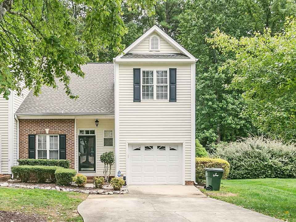 Highly sought after Wills Grove *END UNIT* townhome in a quiet neighborhood convenient to everything! 1st floor master suite. The open floorplan features a large living room/dining room combo w/fireplace, that has a pass through to the kitchen...perfect for entertaining! 2 secondary bedrooms upstairs, large loft area, walk in storage, one car garage, 9ft ceilings. Private covered deck overlooks Durant Nature park. Convenient location near shopping, restaurants, grocery store & 540.