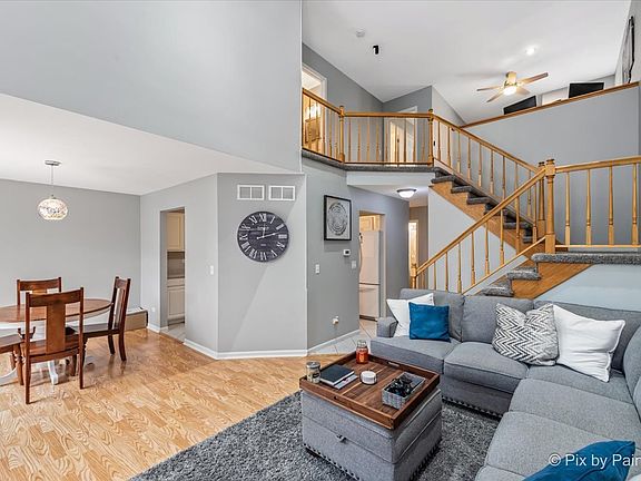 This is one of the nicest and largest townhomes in Timber Trails! This maintenance free, move-in ready home is located near downtown McHenry and the Fox River. The main level features newer flooring, fresh paint throughout, and a spacious living room with high cathedral ceilings. There are tons of windows bringing in lots of natural light. The large kitchen features newer all white appliances and cabinets. There is a big spacious patio off the dining room overlooking the trees. Walk upstairs and you will notice the high pile cushy carpet that was just installed. Second story features 2 large bedrooms, 2 full bathrooms and a loft space for your office or workout room. Master bedroom has a large master suite with double sinks, step in shower and a jacuzzi. Both bedrooms have large walk-in closets. Walk downstairs to the full finished English basement that features the same cushy carpet, fresh paint, fireplace and a wet bar for your entertaining needs. There is tons of storage and cabinetry in this townhouse that also features a large laundry area off the 2 car garage. Main level also has an additional parlor bathroom. Come schedule a showing before it's gone!