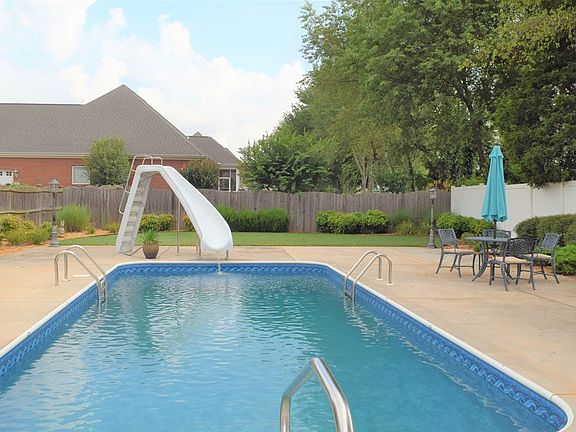 Call today to view this stately 4 bedroom/3 bathroom home with in-ground pool in popular McGuire Estates. The roof is new. This home features a media room, sunroom, & a bonus room. You will love the open floor plan. The formal dining room w/columns overlooks the lg great room w/gas log fireplace, & hardwood floors. You will love the kitchen w/island, separate bar area, pantry, granite counter tops, & stainless steel appliances overlooking the breakfast area. There is a separate office station in the kitchen as well. This floorplan features 2 bedrooms on the main level. The lg master on the main floor has a separate entrance to the sunroom. The master bathroom has a large walk in closet, separate vanities, soaker tub w/tile surround, & walk-in tile shower. Outside you will find a large yard with separate fenced pool area, & additional green space. HURRY!!! You do not want to miss this one. All info inc sq.ft TBD by purchaser.