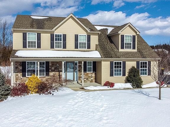 Multiple offers received. Please submit offers by 5:00pm 2/14. Welcome to this spectacular home featuring 4 bedrooms and 2.5 baths! The owners have meticulously maintained this turnkey home from the inside out. Upon entering the front door is the living room (which could also be used as an office) which flows into the dining room. The heart of this home is the kitchen, featuring an island, granite counter tops, lovely tile backsplash, stainless steel appliances (including a gas cooktop with a split oven), all open to the eating area and family room. Off the eat in kitchen are doors leading to a large paver patio for cookouts and outdoor dining. Finishing the first floor is a laundry room with convenient access from the two car garage, hallway way closet and half bath. Second floor features an amazing owners' suite with large walk in closet, bathroom with soaking tub, double sinks and separate shower stall. Three additional bedrooms, linen closet and a full hallway bathroom complete the upstairs. This property sits on a wonderful, 2 plus acre lot with a shed and manicured landscaping. Enjoy the feeling of seclusion with easy access to all major roadways. Don't miss out on the opportunity to make this your new home!