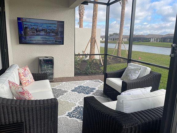 Beautiful Furnished / ALL Utilities included in this NEW IBIS VILLA RENTAL Available in August, Sept, Oct, Nov. Located in the gated community of Esplanade At Azario Lakewood Ranch. This resort lifestyle community offers several amenities for an active lifestyle such as 16 pickleball courts, 18 hole championship golf course, tennis courts, Bocce courts, dog park, pool & hot tub, walking paths, fitness area, spa, restaurants & Coffee shop. The peaceful screened Lanai which backs up to quiet relaxing pond. This 2 bedroom, 2 bathrooms with a flex-room/office/we've turned into a wonderful 3rd bedroom with storage & super comfy Murphy Bed, includes pocket doors for privacy. The main living area sectional folds out into a queen size comfortable bed. Lanai with furniture and outdoor tv (2nd fridge for soda & beer). Ceiling fans throughout. Short walk to golf & all amenities from this home. *Fully furnished, HOA Fees & Utilities included. Just bring your clothes!!