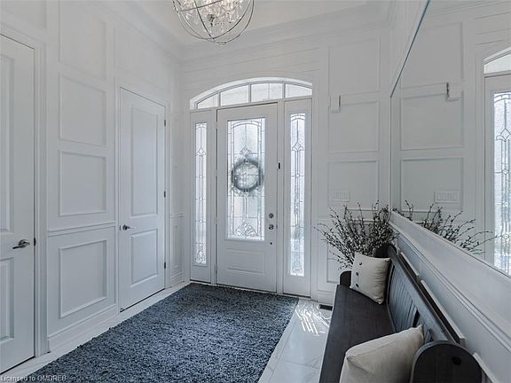 This fabulous Fernbrook home is absolutely stunning and loaded with over $250,000 in stylish upgrades! All the most exquisite finishings and additional upgrades makes this home EXTRA ordinary! 11' ceilings on the main level and 10' ceilings on second level is a rare and valuable upgrade that you will instantly appreciate. A stunning foyer with custom wainscotting and large built-in mirror. Mudroom with custom shelving, bench. Oversized tiles. Here, truly, is a chef's kitchen! Extended 7' island with quartz waterfall. Island's modified placement opens up the area, ideal for busy cooks and entertainers alike. Extended cabinetry, walk in pantry with quartz and custom shelving. Wine fridge. Pot filler. High end appliances. Undermount lighting and more than $50,000 just in potlights and lightfixtures throughout. Handscraped 7" hardwood floors. Solid wood California shutters. Master bedroom with fireplace. Spacious walk in closet featuring custom builtin organizers. Lavish bathroom with glass shower, soaker tub, double sinks, oversized tiles. Four large bedrooms, 3 bathrooms on second level. Beauty powder room on main will make guests feel special! Basement boasts 9' ceilings! Stone, stucco and brick exterior with landscaping in front.