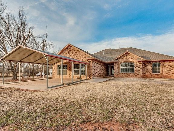 Come see this beautiful home sitting on 5 acres in the Blanchard school district. This quiet home has the potential for horses or other smaller livestock. The home itself has a large living room with a nice fireplace. The kitchen has been updated with granite countertops and stainless steel appliances, it also features an adjoining dining space with lots of storage capacity. The spacious master bedroom has a connecting suite bathroom with a sunken jetted tub, a walk in shower that has been updated, and a large walk-in closet that features built ins. The inside laundry room leads to a converted garage space that could easily serve as a bonus/game room. The house also features an inground pool with a brand new liner and a 30x50 shop running on 200V. Quick access to the highway and only a short drive to Norman or OKC! Call today for a showing.