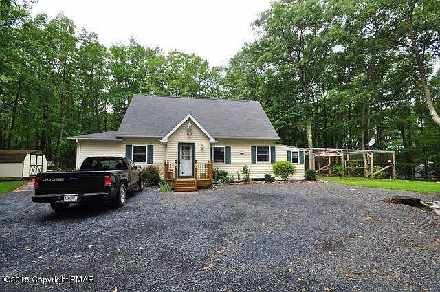 Spacious 3 bedroom 2 full bath Cape Cod situated on almost 1.5 acres in desirable Pocono Heights. This home has it all! The main floor features a large living room, an eat-in kitchen, formal dining room (could be used as a den or office), a 1st floor master with sliding door to deck, full bath, and brand new mud room that opens to the completely fenced in enclosure--perfect for pets, vegetable gardens, or a child play area! Upstairs you have 2 additional bedrooms, a full bath, and tons of storage space. Outside you have a large yard and 2 large sheds. Meticulous, pristine, quiet, low maintenance, and low taxes. Community has a small lake and clubhouse too! Do not pass this one by. Schedule your showing today!