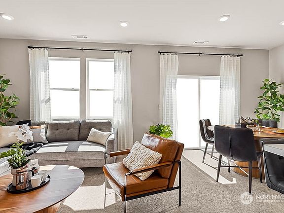 The Magnolia in phase 2 with a refreshing look of white cabinets! The bright kitchen has center island, stainless steel electric appliances and LED lighting with 9 foot ceilings. This 3 bedroom 2.5 bath with 2 car garage has an open flowing floorplan with lots of light! North facing rear yard backing up to trail with partial fence. Laundry upstairs for convenience. Primary bedroom can accommodate a KING bed with nightstands. Large community park and walking trails throughout community. City water/sewer. Front yards included with irrigation. Buyers please register your Broker on the first visit including open houses. Air conditioning included. Sept move in!