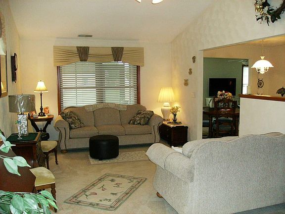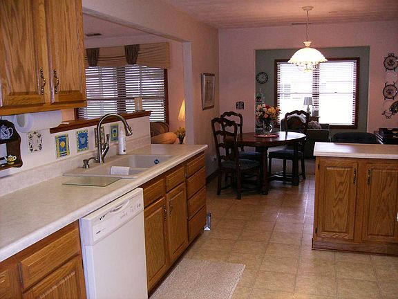 Bright and cheerful condo featuring 1688 sq.ft., with vaulted greatroom and lovely custom valances. Kitchen with light oak cabinetry. Updated dishwasher and refrigerator. Sunroom/family room is 24 foot across overlooking rear yard. Screened patio for watching sunsets has outside grill pad. Spacious master suite with French doors to sunroom. Nice big walk-in closet. Master bath with newer flooring and step-in shower. Guest bath with new vanity. Laundry area with built-in storage cabinets. Large driveway and parking area with end-load 22x24 garage featuring built-in workbench, craft area and extra-large storage closet and cabinets.