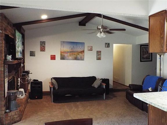 Super clean move in ready home! Open floor plan with vaulted ceiling in living area. Nice size living area with fireplace. All good size bedrooms with the master having its own bath. No wasted space and tons of storage. Breakfast bar can be accessed from the kitchen as well as the living area. Nice view of the backyard from the moment you step into the home. Very light and bright coming from the many windows across the back in the living and dining areas. This one is a must see. Don't miss out!!!