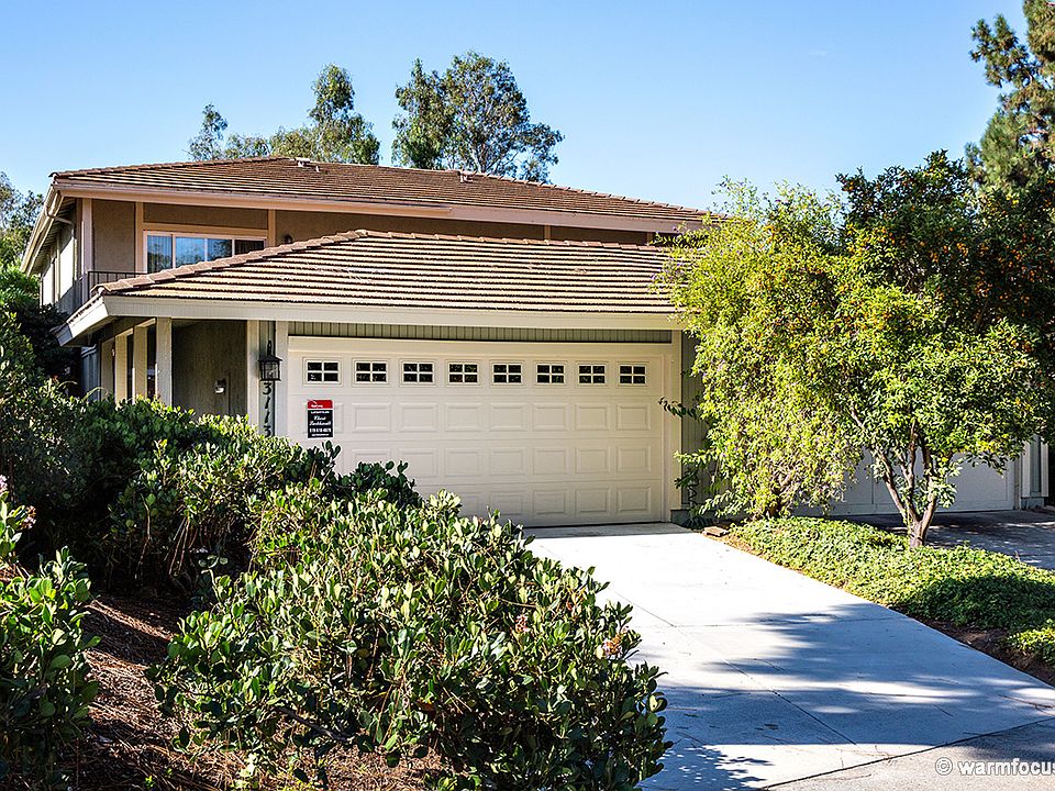 Value Range $569,900-$599,900. Olivenhain Townhome shows off 3 bedrooms, 2.5 baths, 2008 square feet, 2 car detached garage joined by private courtyard and beautiful wood entry door. Enjoy bright kitchen & nook, private sitting room, remodeled powder room, dining room, separate living room has wood burning fireplace and french doors open to backyard patio garden of roses, eucalyptus, pine trees. Peaceful views. Upgrades: crown and base molding, custom staircase, tiled fireplace, wood mantel, baths.