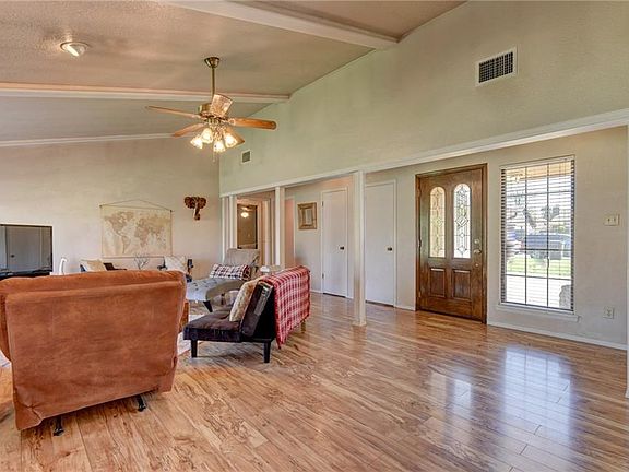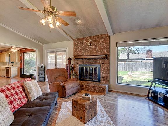 This home is close to everything Norman has to offer and provides immediate access to I-35. Inside this home you'll find a large living room with vaulted ceilings, a brick fireplace, and large bright windows. It offers an open floor plan and flows into the kitchen that boasts another large window and tons of cabinet space. The private master includes a full bath en suite. This home also provides the perfect backyard for outdoor entertaining with a large covered patio, raised garden beds, and big storage shed. Storm Shelter included!